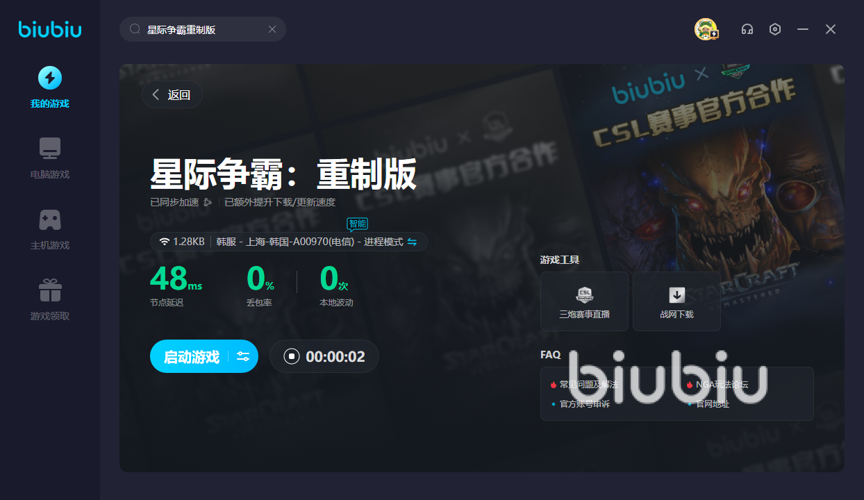 想要在星际争霸重制版中拥有一席之地的话,那就得在好的网络下游戏才行。使用biubiu过后,即可获取极速网络。就算面对众人围攻,也可以守住自己的领土。如果大家在打造各种星际城市的时候掉线的话,那一切都会变成废墟。有了加速器后,就能降低丢包率。这样即可放心继续打造恢弘城市,防止突然掉线。