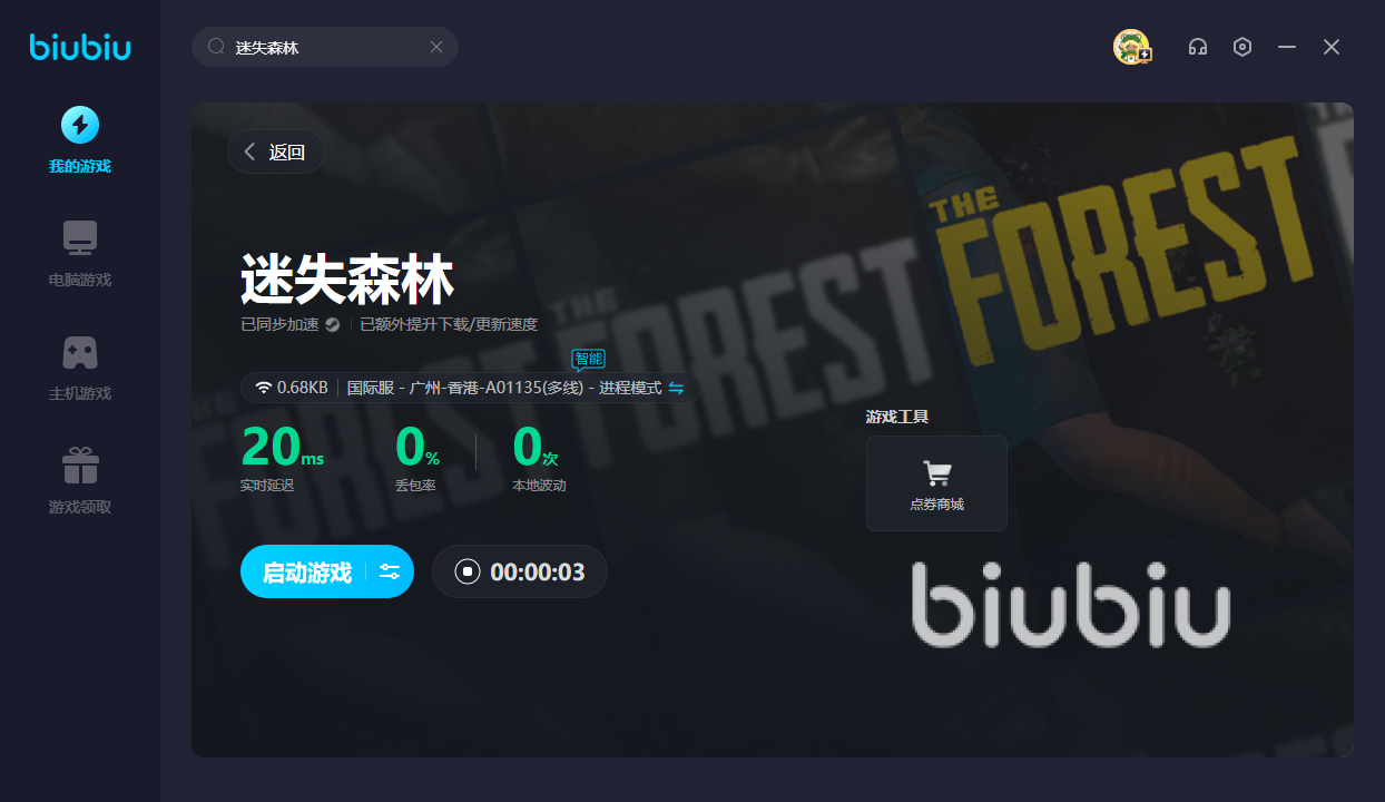 迷失森林属于一款海外大作,目前仍旧没有国服。只有使用biubiu过后,便可获得优质网络,才能进入不同区域的恐怖森林里。新用户的话,可领取24H的免费加速,轻松玩游戏!另外,【【【7月5日-8月4日】】】限时免费加速,足以让大家逃离这片森林!若是在非活动期间亦想继续游戏的话,新老用户均能使用【biubiu不卡顿】,就能畅享三天免费加速。如果在逃离森林的过程中卡顿的话,那只能坐等鬼怪的来袭了。这时可用加速器,即可解决卡顿,令你成功逃离鬼怪的包围圈。