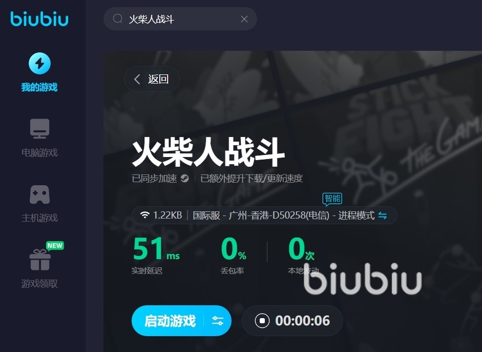 上述就是火柴人战斗卡顿怎么解决的方式分享,在这类联机游戏中会出现卡顿的原因,在很多情况下都是因为玩家的网络稳定性不够,选择biubiu加速器来加速,不仅能够领取到足够时长的免费加速时间还能在游戏过程中享受下流畅的游戏运行。