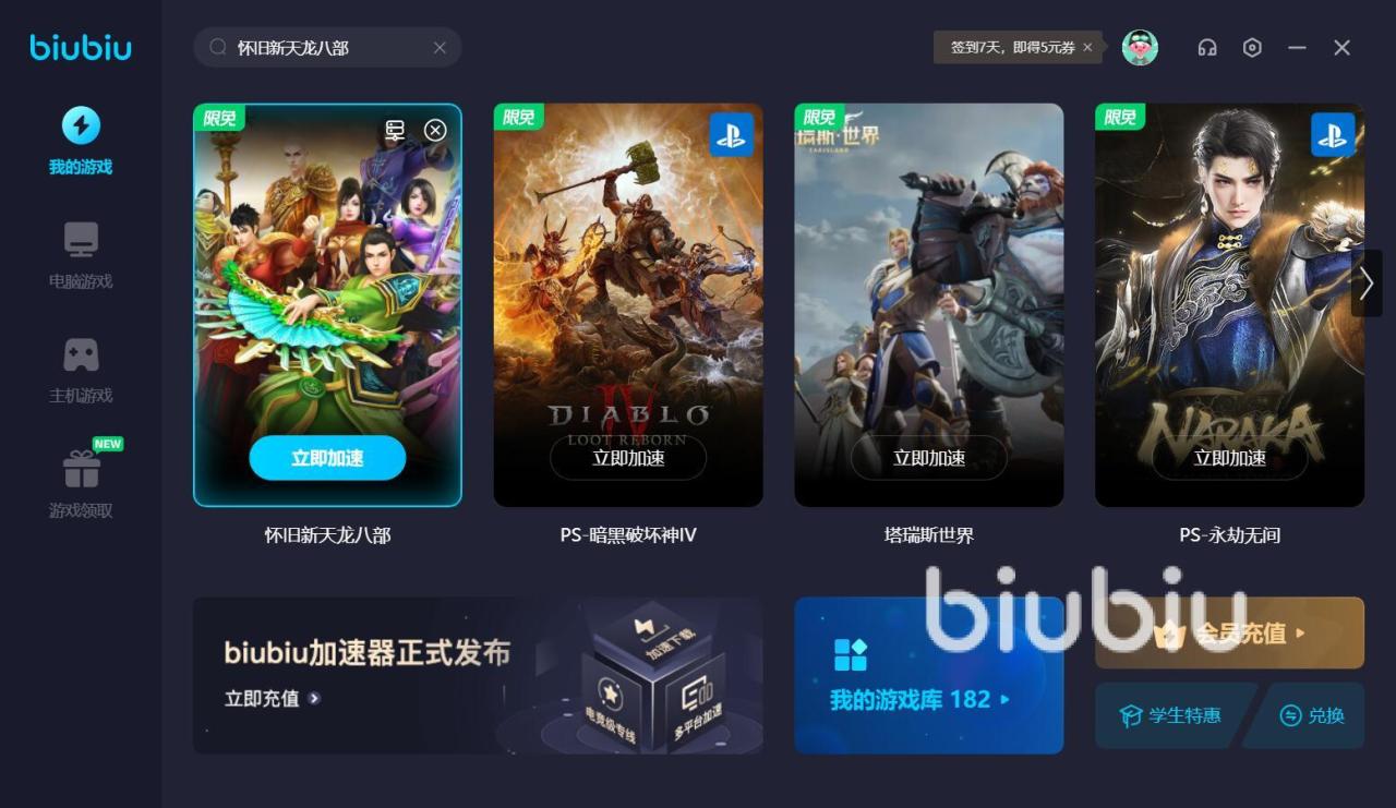 以上就是怀旧新天龙八部卡顿怎么办,天龙八部是一部经典的武侠小说,其中描述的江湖让很多人心驰神往,这款游戏把书中的内容变得真实,让你可以身临其境地去体验。如果你感觉biubiu加速器还不错,那么可以下载体验一番。