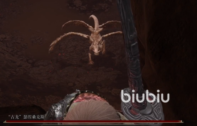 大家从尖刺山中段的赐福点出发,这里需要进入坑洞把古龙叫醒。叫醒后赶紧后撤到进来的斜坡上,这里要处于一个它攻击不到的位置。