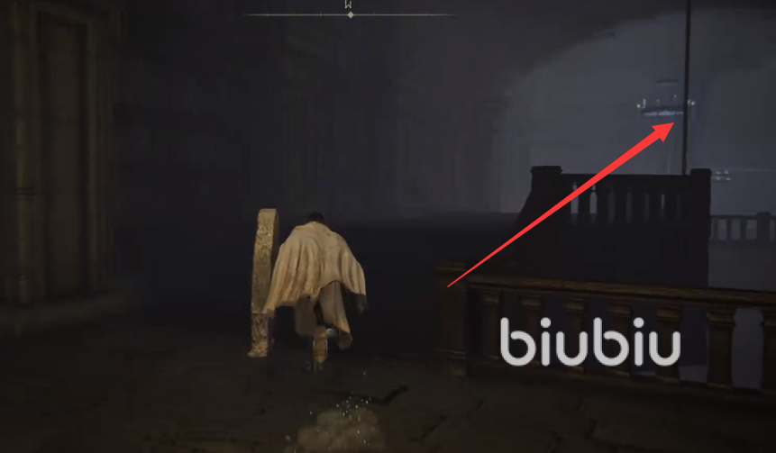 一直走到尽头之后,转身可以看到左边有一个墙洞,跳出去会有一段小路。沿着小路往右走,走到头后就能来到一个新的赐福点,激活赐福点就是大家要前往的保藏库阁楼了。