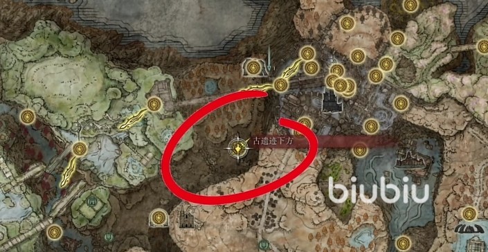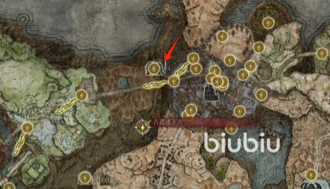 首先我们需要前往地图上面的赐福点,从古遗迹下方的位置出发,一直往右上方走来到泰乌尔锻造遗迹这里,路上是会遇到金粪龟的,可以顺手拾取哦。