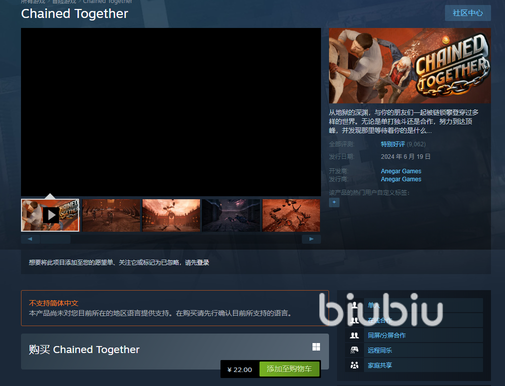 链在一起目前已经于6.19上线了steam,售卖价格是22元。首发优惠会有一个10%的折扣,折后是19.8元,不过截止当前首发优惠活动已经结束了。