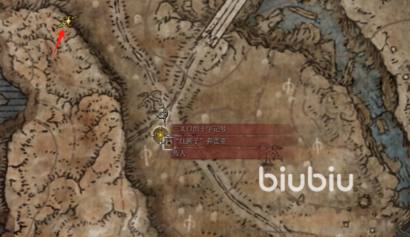 从三叉口的十字记号这里往左上方走,可以在石头旁拿到勇猛狮子斩。