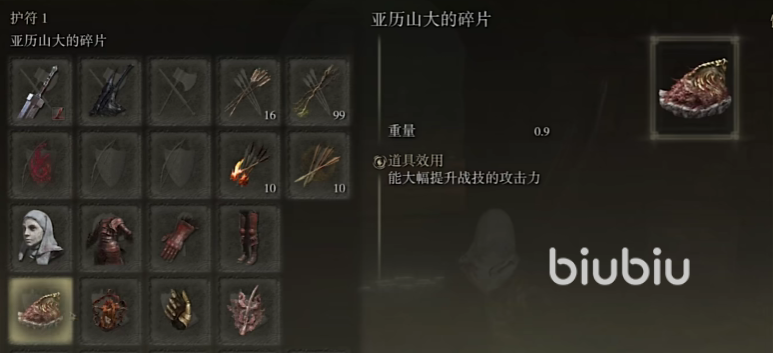 另外还可以带一把古铁陨石大剑,推图的时候使用,对人形怪物以及精英怪的压制力很强,出手距离很远,方便清理怪物。然后选择能够大幅度提升战斗的装备,比如亚历山大的碎片、鲜血君王的欢愉、米莉森的义手、腐败翼剑徽章,这些组合起来的实战效果可以说是非常爆炸了。