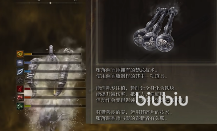 这个战灰取得是有点难度的,需要玩家先去挑战野猪骑士,打它的时候可以用勇猛狮子斩,换血打很快就能击败它了。然后怪物会掉落一个追忆,使用这个追忆就可以换到武器了。该战灰是在武器上面的,我们利用道具把它取下来就行了。