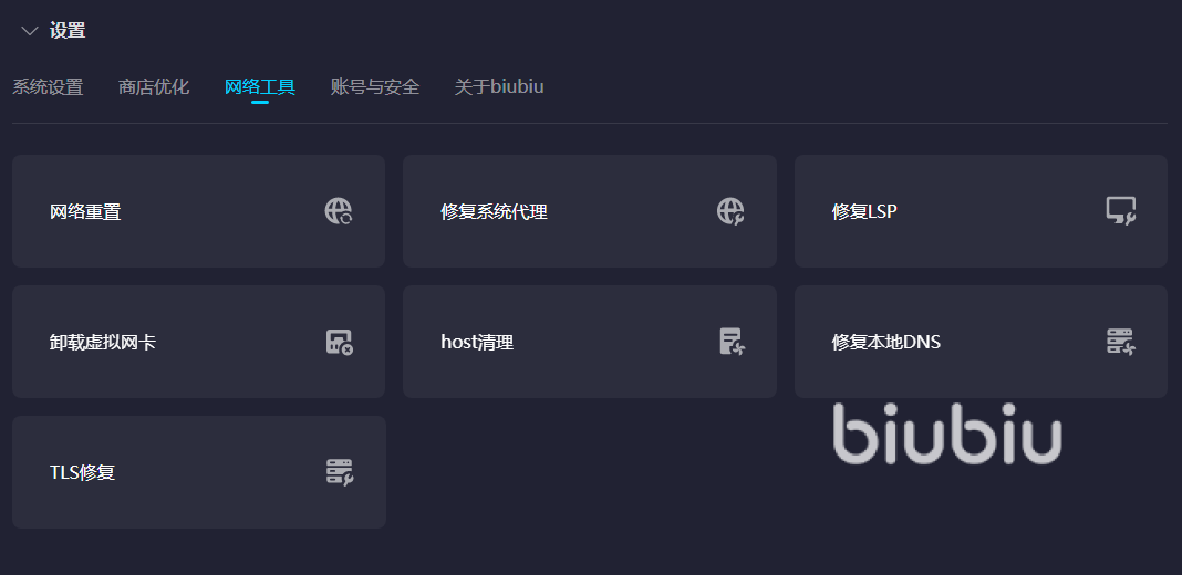绝地求生开放了多个端口,biubiu都支持这些端口的加速,在启动加速之前,小编建议大家先用工具来改善一下电脑网络环境。具体的操作是点开biubiu工具箱,根据自己电脑网络故障情况选择合适的工具进行修复,如果经常性网页无法打开或者一直感觉加速效果不给力的话,可以选择修路LSP这个工具,优化以后这些故障自然都解决了。