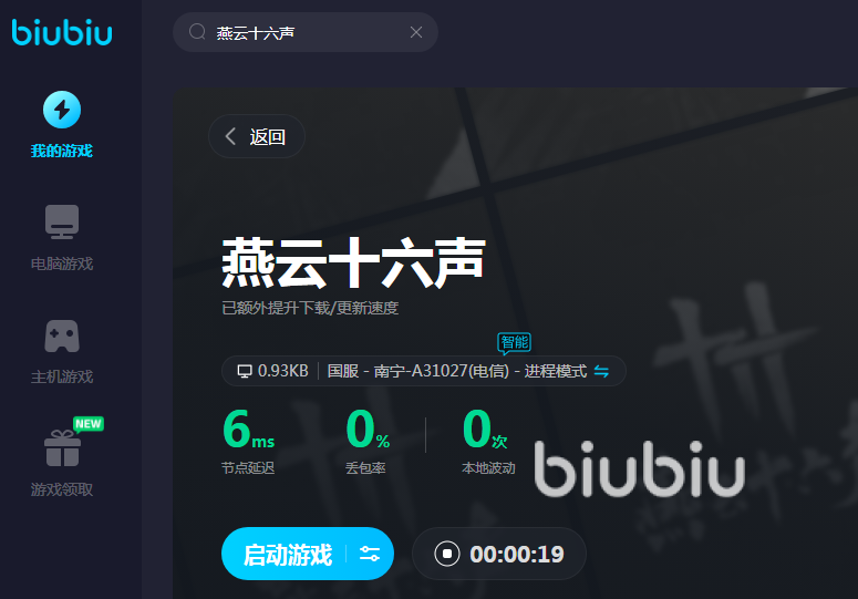 那么燕云十六声闪退用什么软件好就分享到这里了,相信大家心里都有了答案。现在点击上方按钮就能看到biubiu的下载链接了,它的兼容性很强,除了PC游戏外还能加速手游跟主机游戏,小伙伴们千万不要错过哦。