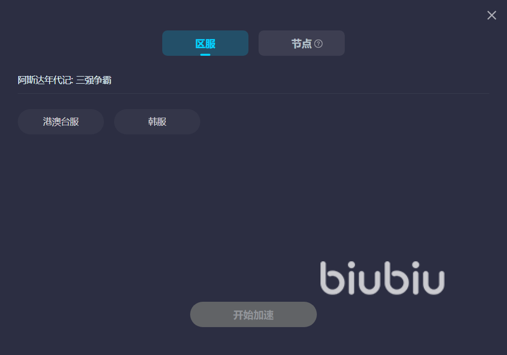 目前阿斯达年代记三强争霸有港澳台服以及韩服两个主要区服,各位玩家在进入游戏加速之前,选好自己所在的区,就能点击一键开启加速,即使你是新手也能快速上手。
