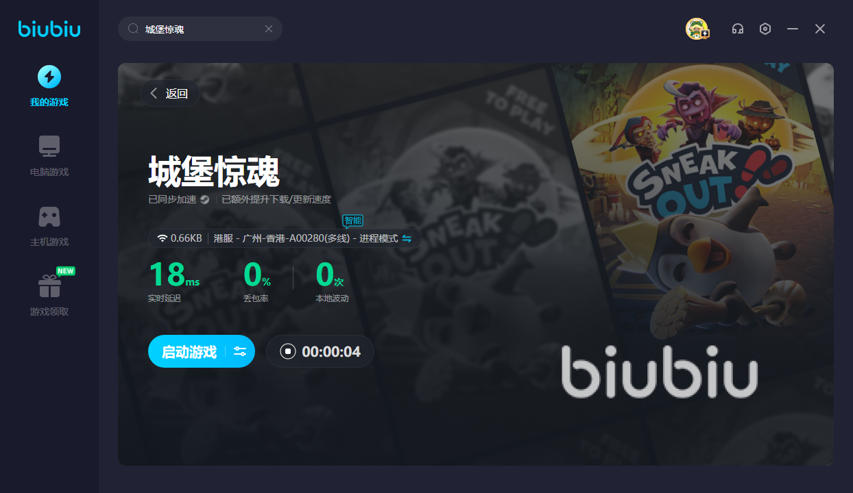 当大家发现城堡惊魂延迟高怎么办?这时只需要默默地启动biubiu,当你拥有好的网络之后。自然可以无惧各种恶劣游戏环境,不管成为什么角色。都可以尽情地专注于自身的任务当中,并快速猎捕其他玩家,又或者躲藏并完成任务。