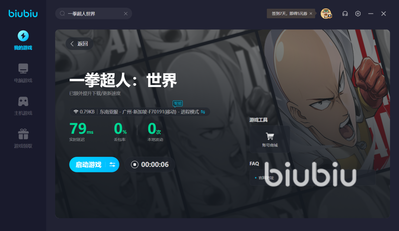 2024年07月03日 14:01 来源:洛萨再火精灵6相信大家都看过一拳超人这部动漫作品,根据这部动漫背景也设计出了相应的游戏,作为一款根据原创动漫改编制作的游戏,游戏还是非常受欢迎的。那么大家知道一拳超人世界延迟解决办法有什么吗?在一拳超人世界这个游戏中,大家可以看到很多原著中的经典角色,而且还可以去体验经典剧情中的内容。游戏一上线就吸引了许多小伙伴加入其中,但是许多小伙伴在刚开始玩游戏的时候经常会发现会因为网络原因出现延迟高的问题。对于这种情况推荐大家可以使用biubiu加速器去解决。