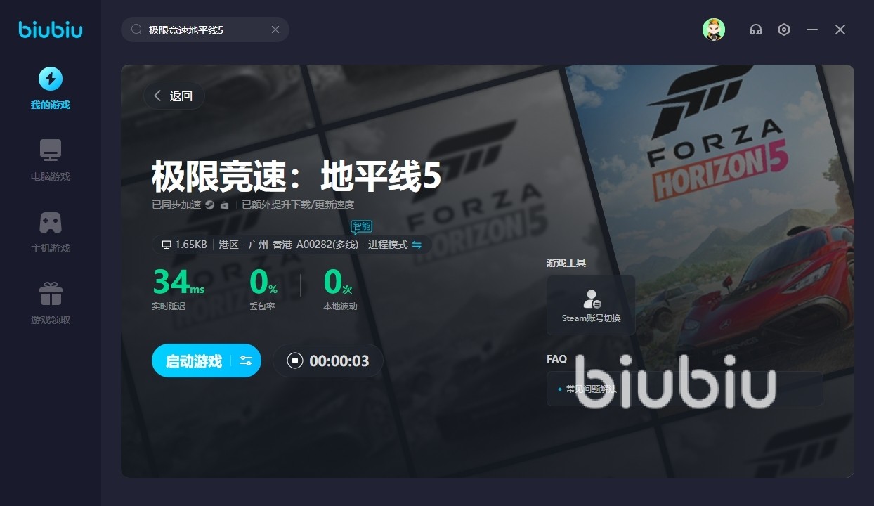biubiu加速器的使用十分的简便,只需在左上角的搜索框中输入“地平线5”,找到游戏并点击加速即可畅享游戏体验,覆盖了主机和PC多个不同的版本,目的就是为了让大家能去自由的选择,而不用在担心会有延迟等情况的发生,这点还是非常难得的。