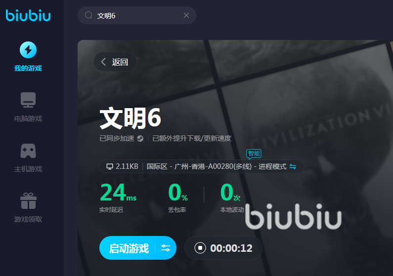 不得不说文明6的小细节设计得真的很到位,每个国家领袖的语言和这个国度的地理建筑都符合真实的特色,大家通过玩游戏就能感受不同的风土人情。除了疯狂基建自己国家以外,还有跟其他国家对战的内容部分,只有在自身网速良好的情况下大家才能专心致志地进行战斗,而biubiu加速器就能长时间给大家提供流畅的网速,哪怕大家玩上一整天它的速度都是一如既往地快,随时回到页面来查看流量情况都能发现网速的实时延迟特别低,用起来很安心。