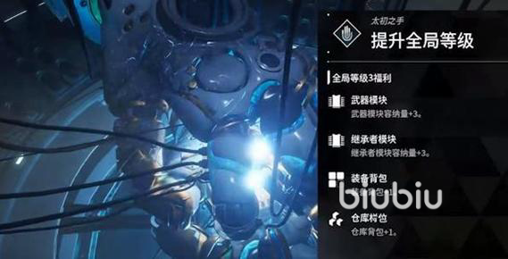 当然关于全局等级提升也会对角色自身强度进行提升:武器模块容纳量、继承者模块容纳量、装备背包和仓库栏量都会得到提升,这对自身的能力和伤害都会产生巨大的影响,有利于我们对高等级任务的完成。
