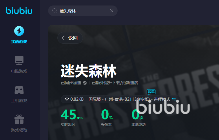 2024年07月04日 14:20 来源:无敌还界王神这个游戏聚集了生存以及恐怖玩法,带给玩家充足的刺激感。进入游戏,我们就要在危险的森林当中,想尽办法存活下来。想要做到这点,没有一个好网络可不行,迷失森林加速器推荐biubiu给大家,用上之后,各位就可以获得一个稳定的网络,方便大家做后续的存活任务了。