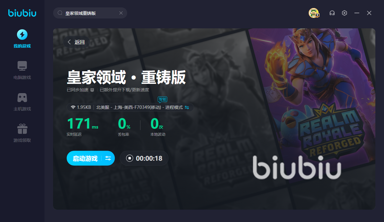 皇家领域重铸版目前风靡海内外,但却仍旧没有国服。要是想加入这场残酷的战斗中,就得使用biubiu,方可加速进入新的世界!若打算试玩的话,新用户可领取24H的免费加速;此外新老用户都能输入【biubiu不卡顿】,便可领取三天免费加速。在竞技的时候一丁点卡顿有可能影响游戏的胜负,使用该加速器之后。即可轻松解决卡顿问题,令你能顺利消灭其他对手。要是队友阵亡的话,那大家就需要更快地拯救他们才行。有了加速器后,就能获得极速网络,节约你的时间。助你更快拯救它人,告别失误。