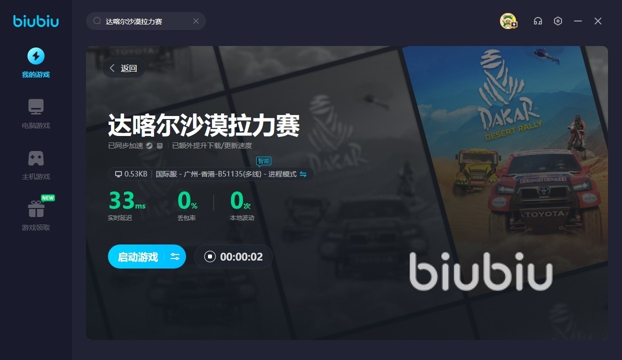 综上所述,以上就是小编为大家带来的达喀尔沙漠拉力赛卡顿解决办法分享。达喀尔沙漠拉力赛的闪退问题并非无解之谜,只要找到问题的根源并采取相应的解决措施,同时借助biubiu加速器便能轻松解决这一问题,享受更加稳定、流畅的游戏体验。如果你也饱受游戏闪退的困扰,不妨尝试一下biubiu加速器,相信它会为你带来意想不到的惊喜。
