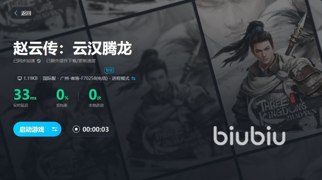 这一次给大家带来的赵云传云汉腾龙延迟使用什么加速器效果好,到这里就彻底结束了。biubiu不仅是一款好用的加速器,此外还收录了很多热门游戏,当前市面上的大部分游戏都会在这里遇见,而且biubiu也给大家推出了很多限免的游戏,有国服类,主机类,只要你喜欢都可以随意尝试,今天的介绍到这里就全部结束了,希望可以给有需要的宝子带来帮助。