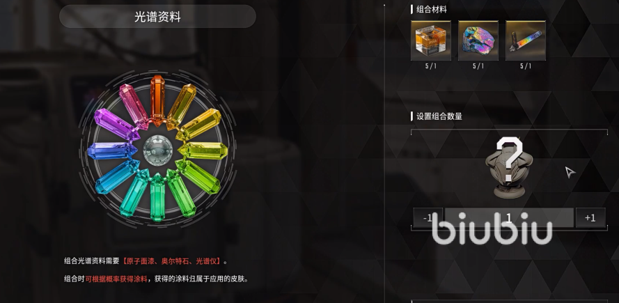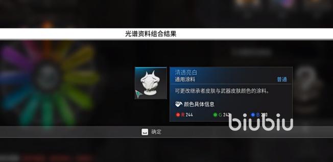 跟仪器交互之后,就可以使用材料进行颜色合成,这个是具有随机性的,玩家可以自行决定每次合成几个颜色。得到满意的颜色之后,就可以进入皮肤页面,单独点击想要换色的服装,在右边选择对应颜色应用就行了。