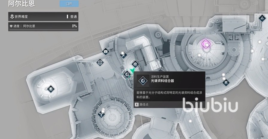 第一步是要来到阿尔比恩,在地图中间偏左的位置,会一个涂料生产装置,到达位置之后就可以看到三个屏幕,上面带有不同的色彩在,在这里就可以进行调色的。
