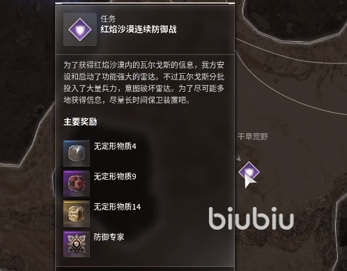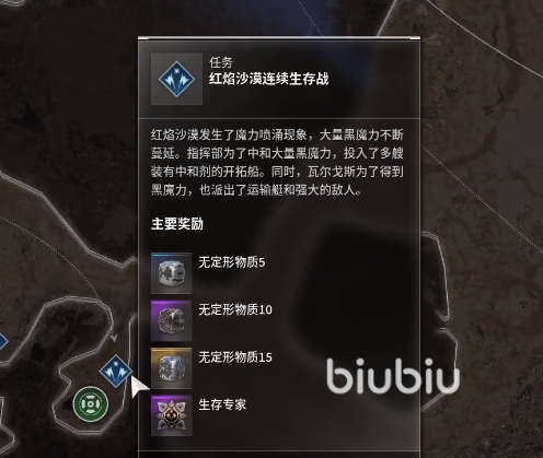 大家进入游戏后打开大地图,就能看到很多的连续生存战与连续防御战任务,玩家完成这些战斗就可以获得一定数量的无定形物质。这里获得的数量主要根据玩家的表现,例如生存战中在支撑到第几波后,就会根据玩家表现有几率掉落相应的无定形物质,当然运气不好的话,也有可能拿不到。
