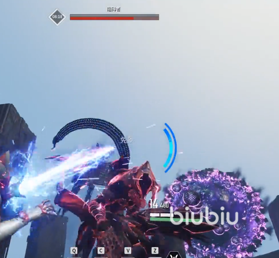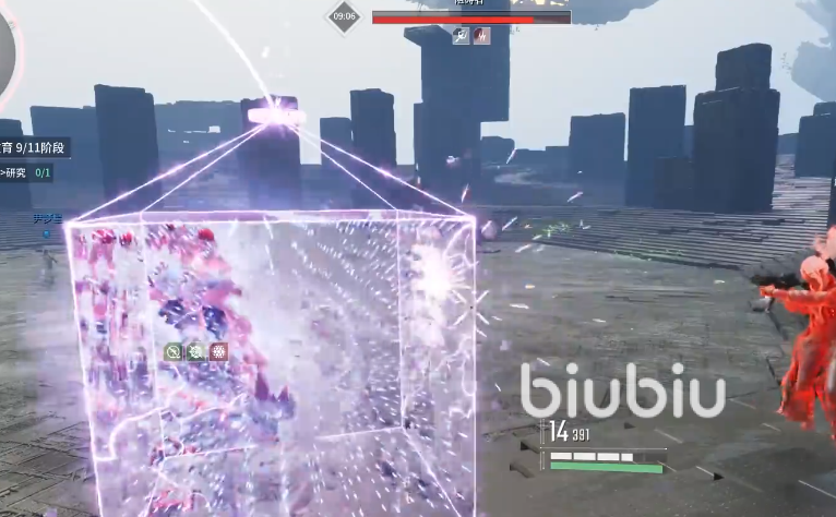 阻碍者这个boss还是比较强大的,它的机制比较多,第一个机制就是它输出的时候,会随机挑选一人开始禁锢,禁锢的玩家会被扣留在紫色的方块里面。这里玩家可以使用武器打破方块,这样才能释放队友。如果倒计时内大家未能打破方块,那么这位被禁锢的队友就会被秒杀。