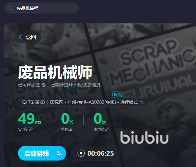 闪退归根结底就是延迟上下跳动的数据太高了,不过像废品机械师这种沙盒游戏想要玩好就得沉得住气,在每次任务中你都能收集解锁各种不同的废品,而这些废品都是和生活中的物品特别常见的,所以在游玩的过程中会有种格外亲切的感觉,除了收集之外还设置了冒险的玩法,所以游戏开发商脑洞是相当之大的,要是不体验一番真是特别可惜,要是想玩的话,可以提前开启biubiu加速器,要是第一次用也没事,正好新注册也能领取24小时免费加速,要是之前有了解过,也可以输入兑换码【biubiu不卡顿】领取72小时免费加速,这个是新老用户不限制的。