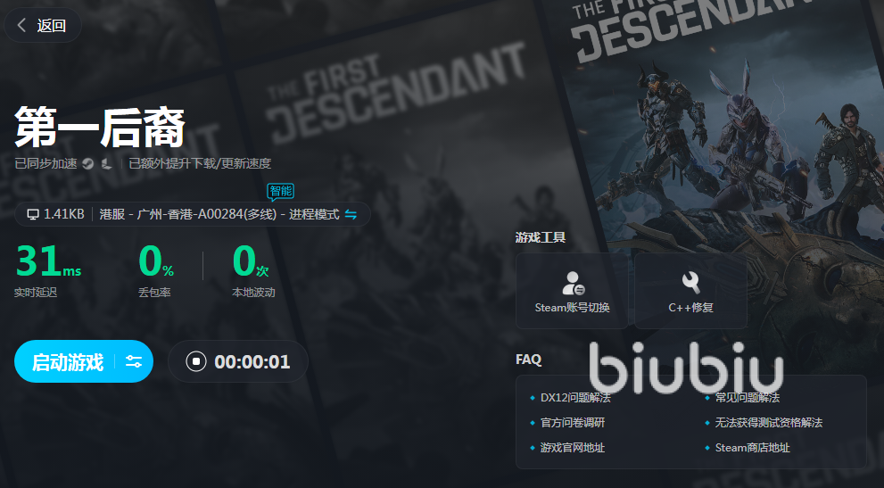 由于我们在游戏内会遇到成群结队的敌人,如果这个时候网速不好的话,那就会出现画面掉帧的问题,严重的时候还会导致客户端崩溃的情况。所以我们在上号战斗之前应该先用biubiu的加速器,这样就能稳定传输游戏的数据,并提高我们的网络使用速度,问题也就随之解决了。