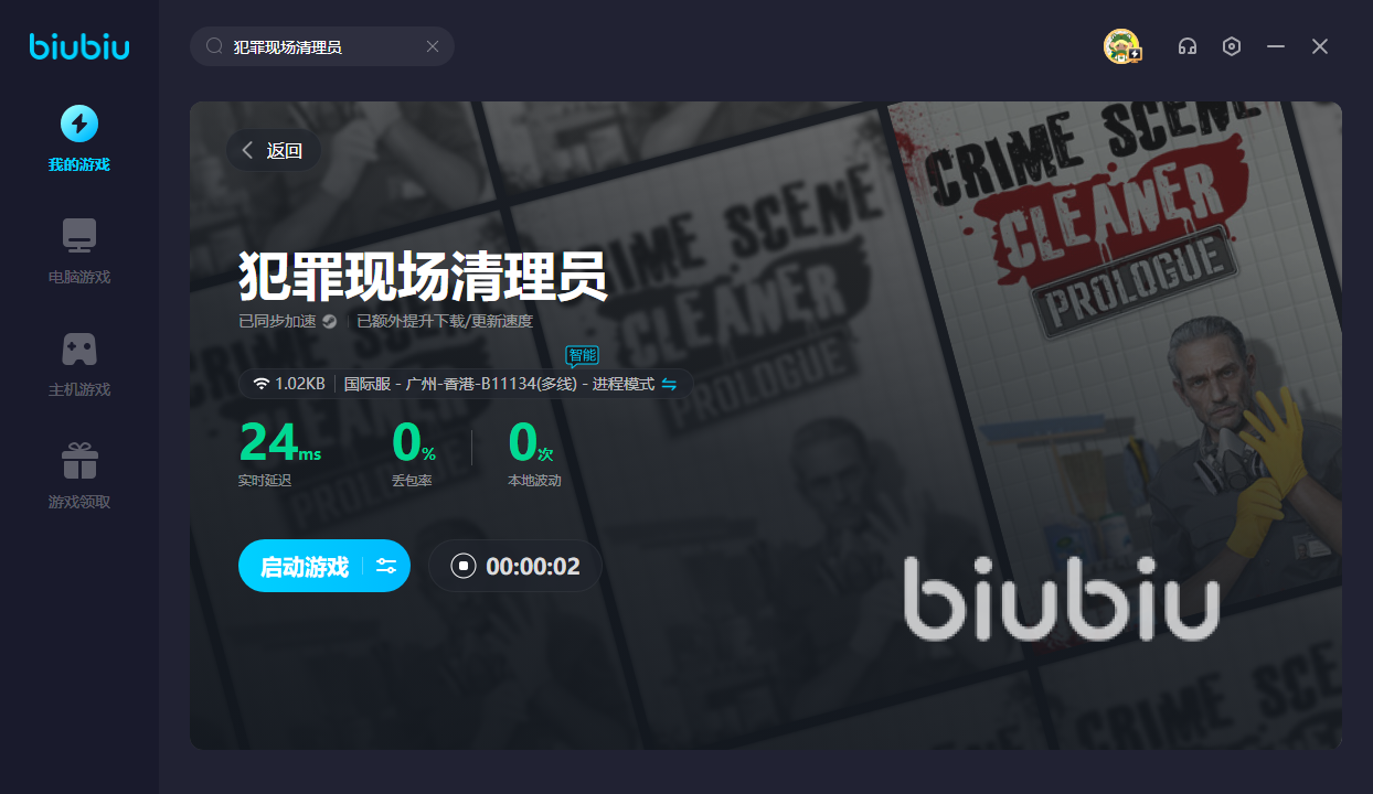 犯罪现场清理人作为国际性游戏,不少朋友想加入的话。就得使用biubiu,合理优化网络后。方可避免无法进入清理现场,毕竟该游戏仍然没有上线国服。没玩过的话,新用户可领取24H的免费加速;另外新老用户都可输入【biubiu不卡顿】,便可获取三天免费加速。令你的加速之旅变得更加愉快。若是清理现场途中太卡的话,那就会留下更多的痕迹,让你更快地败北。用了加速器之后,即可防止卡顿。这样便可更快清理现场,不至于被追踪。