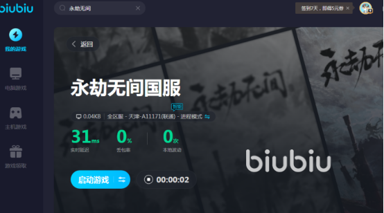 Biubiu拥有简洁的设计,使用方法非常简单,将各种步骤完美优化,即便是新手小白从未接触过此类型应用,也能够使用。输入手机号以及身份证号注册登录游戏领取24小时免费加速时长,然后在搜索框当中输入永劫无间国服,找到相应的结果点击立即加速即可。当24小时免费福利结束之后,还可输入兑换码【biubiu不卡顿】获得三天全平台福利。这样的福利非常良心,是大部分加速器无法做到的。