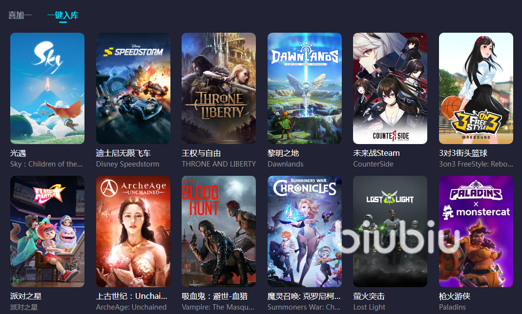 同时biubiu还给大家准备了其他好玩的游戏,点击游戏领取以后可以看看一键入库跟喜加一,一键入库的资源都是经过精心挑选的,入库到游戏平台以后大家以后就不会觉得没有游戏可玩了。喜加一里面的免费游戏也很值得领取,系统将跳出教程来教大家怎么把游戏领到手,方法很简单。