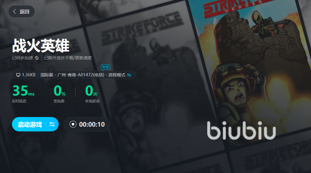 战火英雄为玩家带来独特的视觉盛宴,让本身平凡的游戏变得拥有较高品质,在一定程度上满足人们的感官体验,因此收获众多忠实的粉丝。尤其画面表现及自定义玩法都极其出色,小伙伴们可以在熟悉的战役关卡中不断的推图,还有夺旗以及团队竞技等多种内容,总之游戏的整体设定诚意满满。在战斗场景这方面推出多种,比如火车站等可使用的武器更是极其丰富,包括步枪、大炮、机关枪。玩家体验游戏表示有卡顿丢包情况,大部分与网络不稳定有较大关系,小伙伴们可以使用biubiu来优化本地网络稳定游戏连接。