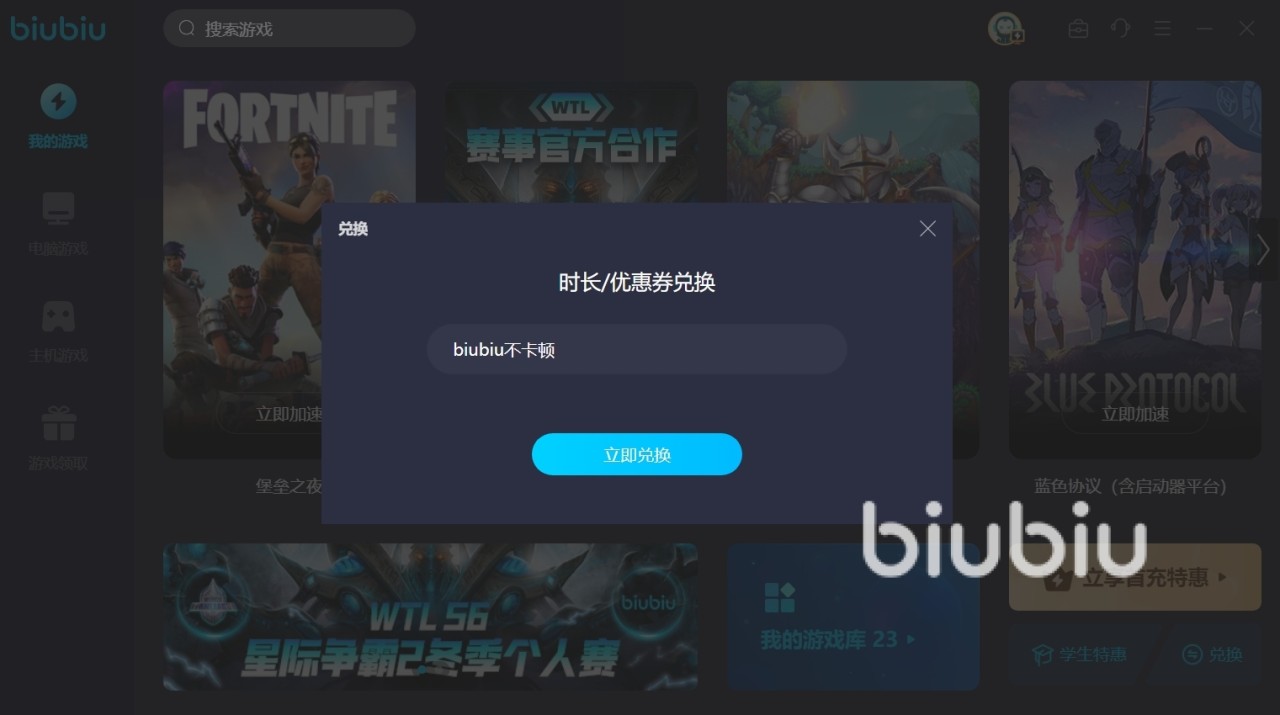 好消息是现今biubiu加速器官方带来新人注册福利,新人首次注册并登录后,免费获得24H加速时长。此外,新旧用户用【biubiu不卡顿】兑换码,可兑换三天会员加速时间,记得键入时兑换码要小写哦!总的来说,新手可享受高达96小时的免费加速体验,福利活动还是很给力的。