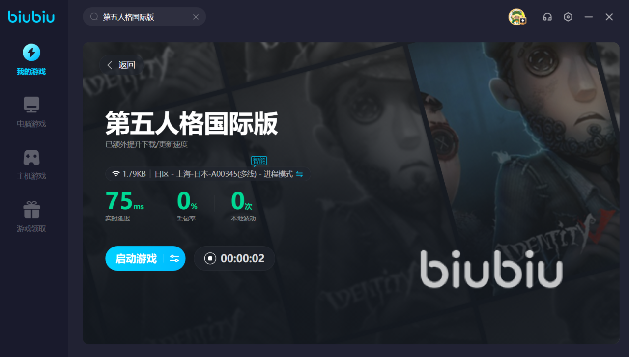 第五人格是非常热门的不对称竞技游戏,4~8名求生者与1~2名监管者进行比赛,而且角色选择方面非常丰富,各有其特殊的技能,还有各种华丽漂亮的皮肤。不少玩家喜欢玩国际版,因为对局的节奏更轻松,打角色牌子的竞争相对较少。但因为国际版的服务器在海外,国内玩家直接连接登录,可能遇到网络波动受影响,在排位上卡顿一下非常致命因此小编推荐各位第五玩家提前安装biubiu加速器,通过它来降低游戏延迟。