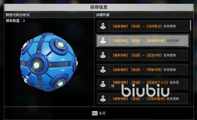 完成这个任务需要用到精密代码分析仪和超精密代码分析仪,这两个材料可以通过击败地图上的任务怪物来进行获取。获取到两个分析仪后,大家就可以前往不毛之地寻找保管箱。