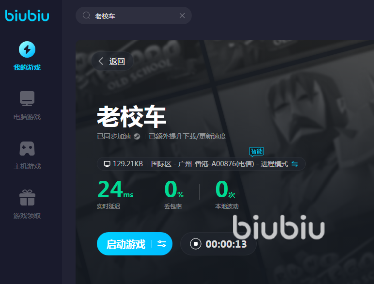 老校车里有数百个任务,这些任务要求很有传奇色彩,不仅要求玩家挑战BOSS,还要在规定的时间内完成。大家玩游戏的时候都不愿意碰上卡顿,因为这实在太影响操作了,小编保证只要用了biubiu就能告别卡顿,它的游戏专线加速技术带来电竞级的网速,不仅速度快,稳定性还很强。用户在页面上就能监控到几乎没有延迟,丢包率也非常低,这样就可以放心玩游戏了。