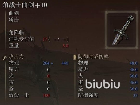 这把武器拥有独特的战技名为角降临,它的效果是能让混生角降临到剑身,接着直接把武器刺入到地面,就会形成向上刺起的角刺,对敌人造成巨大伤害。对于boss的伤害可能略低一点,但是对于击杀精英怪来说还是非常实用的。