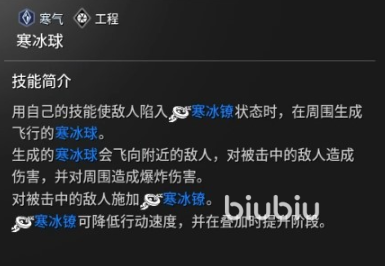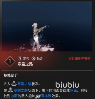 技能2寒霜之路,脚下的地面会结成冰面,接触到冰面的敌人会施加一层寒冰镣效果。