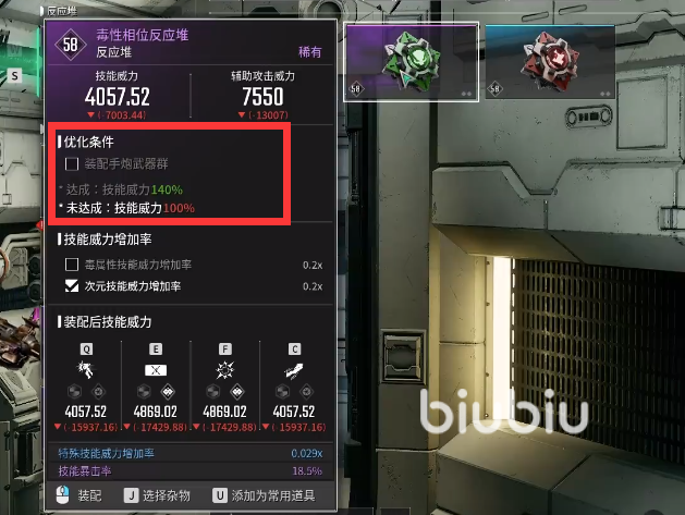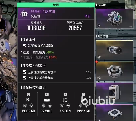 反应堆装配后可以有效增加技能的伤害,但是这里要注意每个反应堆的优化条件,有的优化条件是装配即可享受效果,有的优化条件是使用才能享受效果。