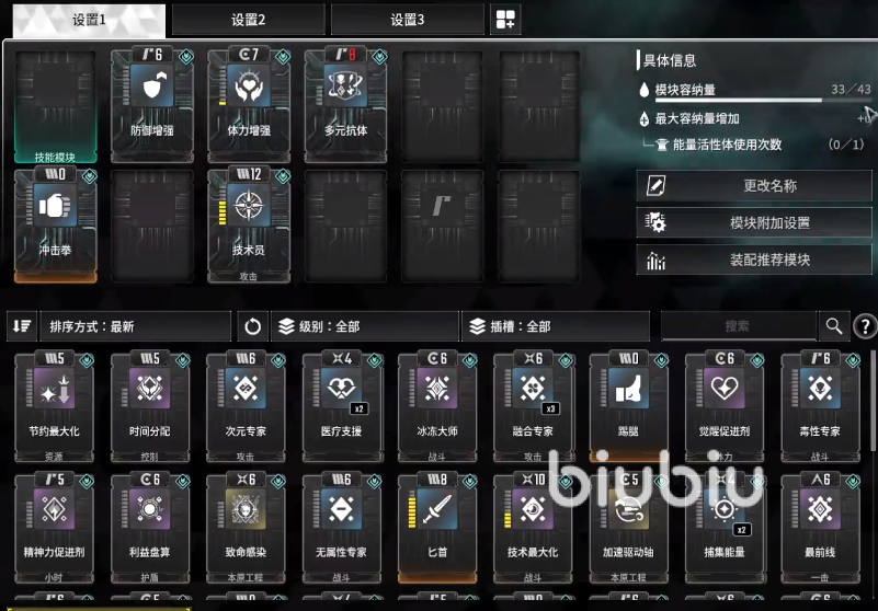 接着可以看到模组这里,主要是用来强化各种武器和角色能力的,每个人物以及每个武器所能携带的模组都会有容量上限,通过安装能量活性体可以增加容量的上限。另外模组槽位也有不同的类型,放入对应类型的模组,可以使消耗的容量减少一半,这样可以节约很多容量。在主城NPC席利恩这里,可以对模组进行强化,提升模组强度。随着游戏时长的增长还可以提升全局等级,可以稍微增加仓库的库存和模组容量上限。
