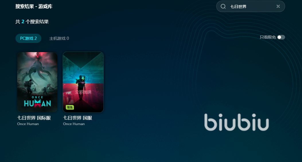 biubiu这次更新还带来了游戏限免加速的功能区,玩家们可以不花钱就能享受到低延迟的游戏环境,同时限免游戏的库容量还在不断的扩充。此外它还网罗了千款国服、外服和主机游戏,哪怕是再小众的游戏也不用担心无法实现加速的,而且它的客户端内还能轻松实现一键入库“喜加一”的操作。
