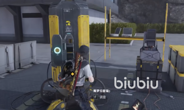 然后往左边走,就可以在中控室这里找到武器箱,里面是有很多补充弹药的。接着回到地面的位置,一直往右边走,来到另外一边的建筑物里面,屋子里面闪着红光就代表找对了。进去可以看到黄色的武器箱子,打开之后里面是有转能电池以及头部防御这个模组的。这里搜完了之后可以出来,离开建筑群,沿着往右的大路走,可以看到有个收集点。在这里可以开启宝箱,得到诡谲画作,方便完成其他任务开启后续的宝箱。