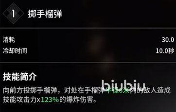 一技能掷手榴弹,莱皮克会向前方投掷出一个手榴弹,并对敌人造成大量伤害。二技能牵引手榴弹,向前方投掷一个牵引手榴弹,并对周围敌人进行牵引。