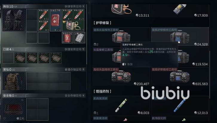 另外大家如果穿了三级甲的话,还建议各位带一个简易护甲维修工具包。如果进游戏穿的是二级甲,就可以换地图里面的护甲,但如果是三级甲,那就不建议换,带个维修包修复一下又能满血作战了。