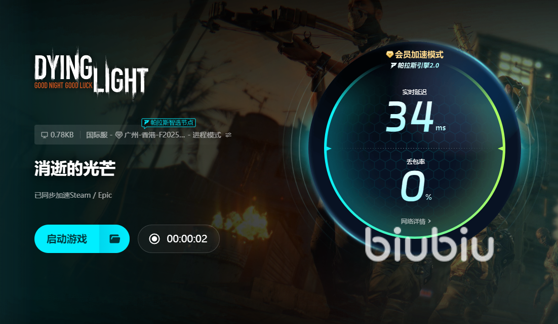 消逝的光芒是款结合了生存、战斗、射击等多种元素的游戏,为各位提供了充满刺激和高度自由度的体验,在这款游戏中,玩家要躲避大量的敌人,同时也得去解锁很多全新技能,并运用多样化的战斗方式来快速的击败对手,游戏的高自由度以及出色的音效使得大家能轻松沉浸在游戏中,不过网络出现延迟以及波动等方面的现象也会严重影响各位游戏体验的,甚至会导致掉线以及卡帧等,为了能够优化各位的网络体验,建议去使用biubiu来改善这些问题。