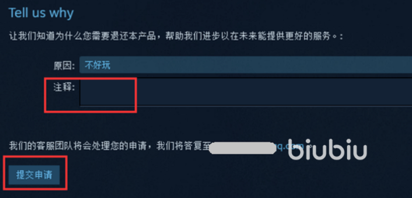 之后页面上会提示本次退款,会有多少钱退还至Steam钱包,大家确认好退款金额信息没有错误,然后将退款原因说明,具体是哪些地方不好玩,想要退款,这也等于是提供了建议给游戏开发者,他们后续可以对自己的游戏进行优化,让玩家的游戏体验更好也是很不错的。在所有的内容都写好之后就可以提交这个申请,等待官方审核了,这个退款大概会在1-3天的时间退到大家的账户当中哦。