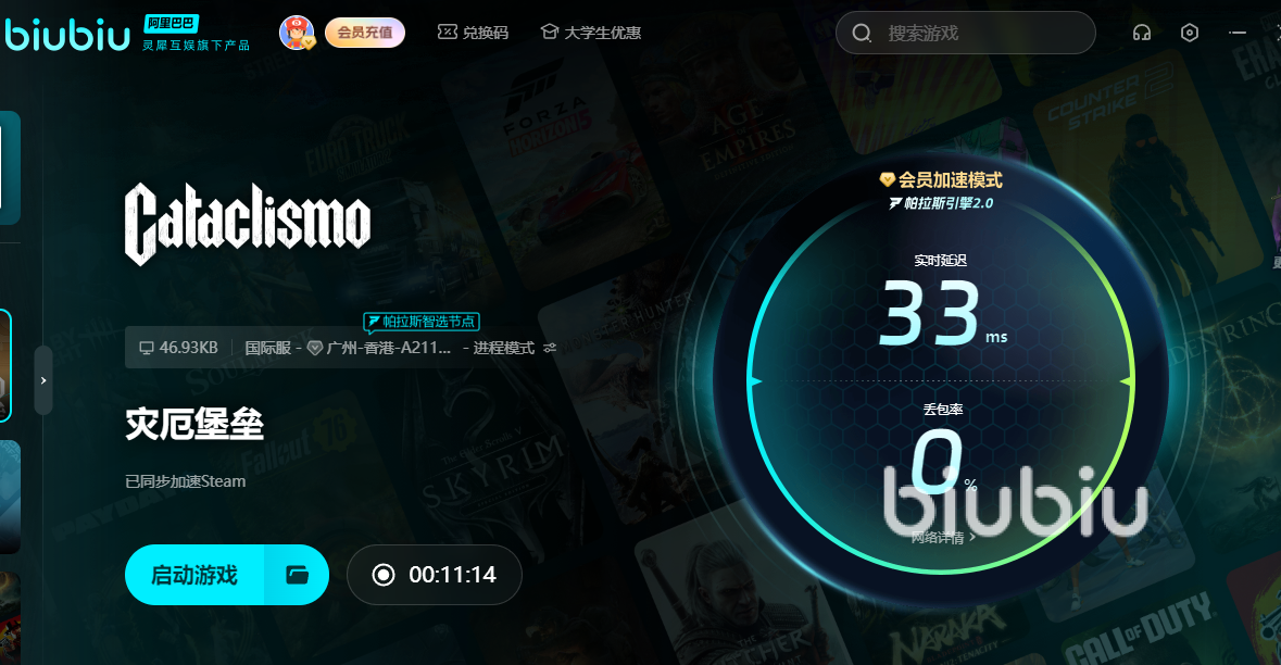 游戏内的战斗节奏是比较快的,如果这个时候网络环境不行的话,就会先出现画面掉帧的情况,然后就会变得异常卡顿,要想彻底的解决掉这个问题,就要在游戏之前开启biubiu的加速器。它独特的内网传输的模式,哪怕在弱网环境下依旧能提供加速的能力,这样掉帧卡顿的问题就能够解决了。