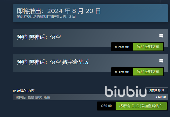 鼠标滚轮往下拖,就会看到购买页面,游戏的几个版本都会展示出来。这款游戏就是有普通版以及数字豪华版,价格是不一样的,要是预算足够,还可以额外购买豪华升级包。大家可以根据自己的喜好以及消费力,选择性的进行购入。