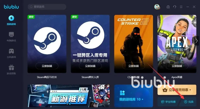 有一些眼尖的小伙伴马上就发现这款游戏的左上角还会有一个限免标志,这就是加速器所提供的特色服务,会给主机游戏带来免费的加速活动,让不少的玩家都怦然心动。玩家如果有兴趣,可以直接在兑换的板块中去领取免费加速时长。现在新用户在点击上链接完成注册之后可以免费24小时。兑换码【biubiu001】在主页面输入之后,可以额外解锁三天免费加速时长总共是免费96小时。可以让玩家在游戏中进行的体验,不需要担心游戏卡顿能满足在游戏中的操作。加速器的界面具有简洁明了的特点,哪怕是第1次使用,大家也能迅速的上手,没有太复杂的配置。只需要一键即可完成加速服务,降低使用的门槛。